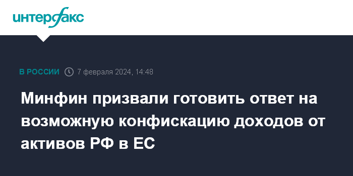 Минфин призвали готовить ответ на возможную конфискацию доходов от активов РФ в ЕС