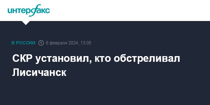 Москва. 8 февраля. INTERFAX.RU - Следствие по делу об обстреле Лисичанска установило конкретное подразделение украинской армии, причастное к атаке, его командирам будет заочно предъявлено обвинение, заявили в Следственном комитете России.