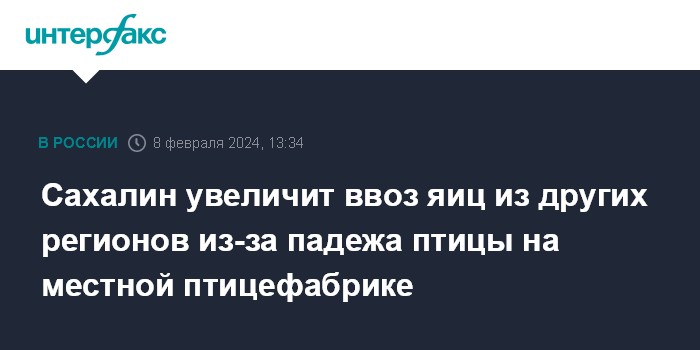 Сахалин увеличит ввоз яиц из других регионов из-за падежа птицы на местной птицефабрике