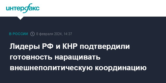 Лидеры РФ и КНР подтвердили готовность наращивать внешнеполитическую координацию