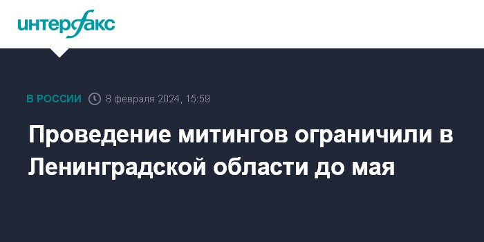 Москва. 8 февраля. INTERFAX.RU - Оперативный штаб Ленинградской области ограничил проведение митингов и других протестных акций в регионе до 1 мая, сообщает пресс-служба областного правительства.