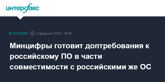 "В планах на 2024 год - установить требования по совместимости российских программных продуктов (т.е., включенных в Реестр российского ПО - ИФ) с российскими ОС, - заявил замдиректора департамента развития отрасли IT Минцифры Иван Новоженов на "Инфофоруме-2024". - Это не будет одноэтапный переход".