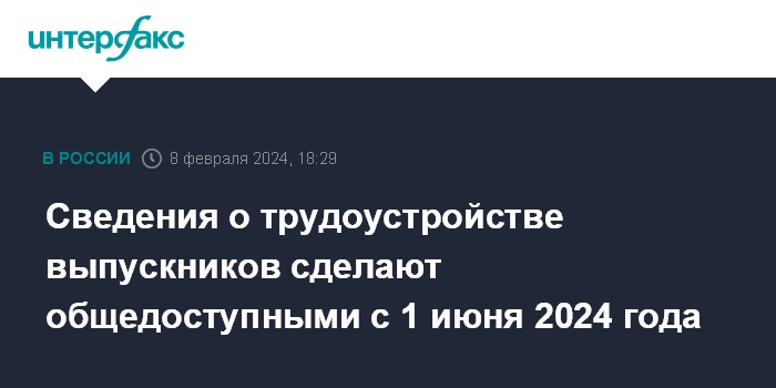 Сведения о трудоустройстве выпускников сделают общедоступными с 1 июня 2024 года