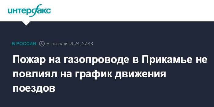 "Все пассажирские и грузовые поезда, следующие через станцию Куеда, идут в графике. Возгорание газопровода в поселке Куеда не повлияло на железнодорожное сообщение", - сказали в пресс-службе.