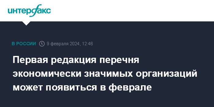 Первая редакция перечня экономически значимых организаций может появиться в феврале