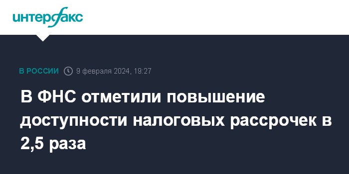 В ФНС отметили повышение доступности налоговых рассрочек в 2,5 раза