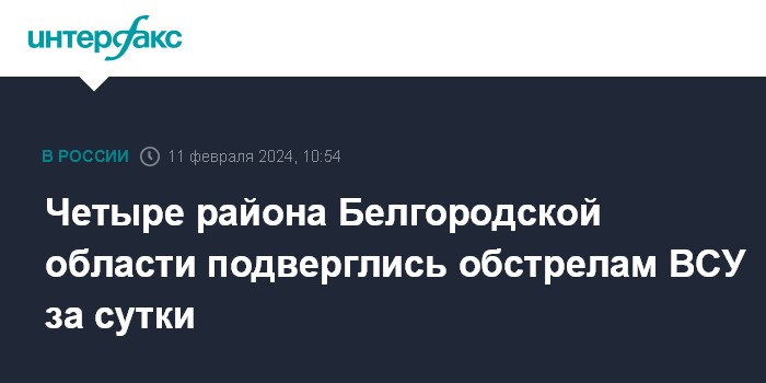 Москва. 11 февраля. INTERFAX.RU - Губернатор Белгородской области Вячеслав Гладков сообщил в воскресенье в своем телеграм-канале об ударах, нанесенных украинскими военными по территории региона за минувшие сутки.
