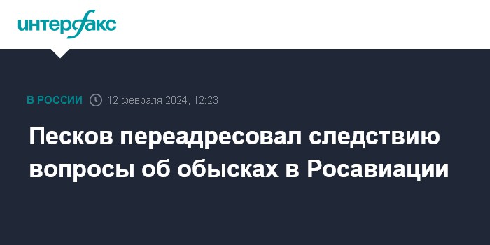 Песков переадресовал следствию вопросы об обысках в Росавиации