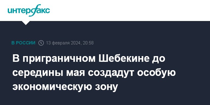 Москва. 13 февраля. INTERFAX.RU - Губернатор Белгородской области Вячеслав Гладков заявил, что особая экономическая зона (ОЭЗ) в Шебекинском горокруге, который граничит с Украиной и подвергается постоянным обстрелам, будет создана до 15 мая текущего года.