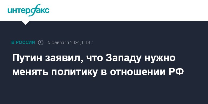 Москва. 15 февраля. INTERFAX.RU - Ставка на продолжение войны с Россией не принесла результатов, западным странам нужно менять свою политику и искать компромиссы, заявил президент РФ Владимир Путин.