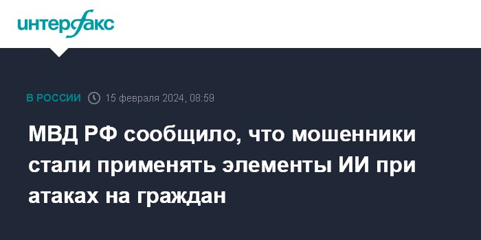 МВД РФ сообщило, что мошенники стали применять элементы ИИ при атаках на граждан