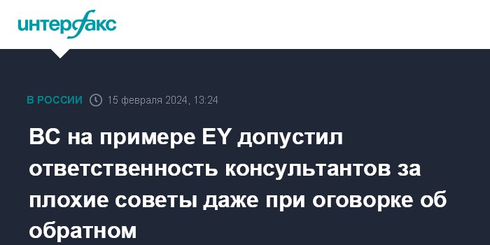 ВС на примере EY допустил ответственность консультантов за плохие советы даже при оговорке об обратном