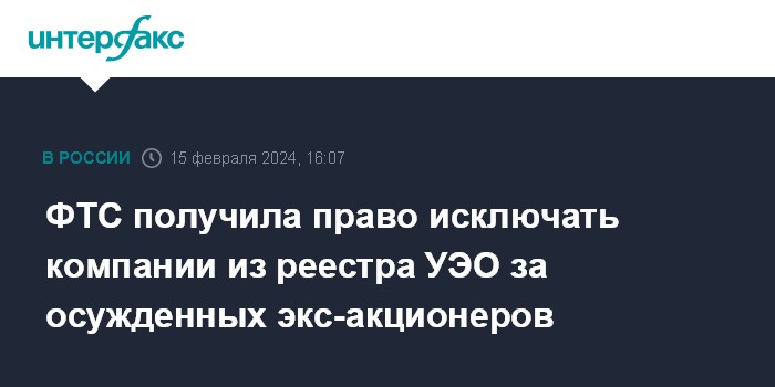 ФТС получила право исключать компании из реестра УЭО за осужденных экс-акционеров