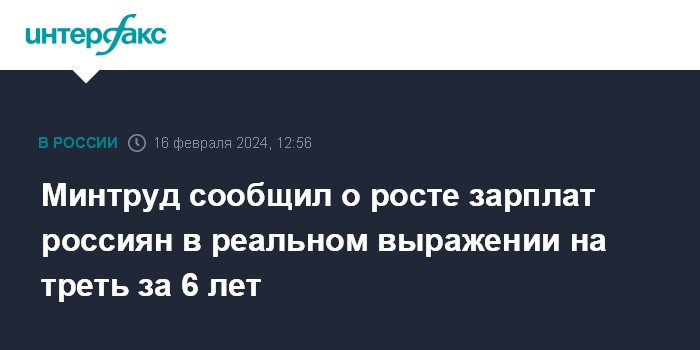 Москва. 16 февраля. INTERFAX.RU - Зарплаты россиян за вычетом инфляции за последние шесть лет выросли почти на треть, сказал глава Минтруда РФ Антон Котяков.