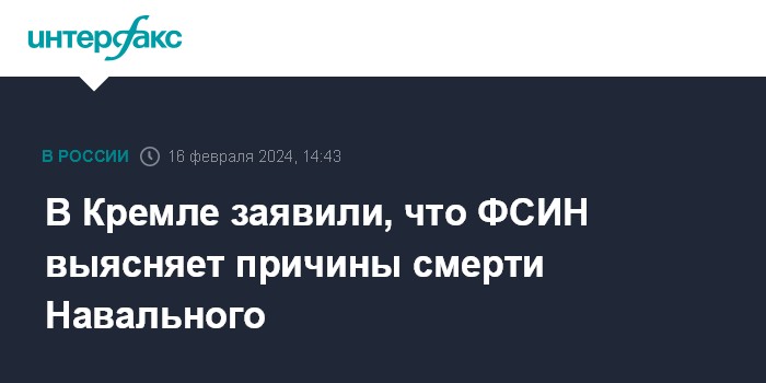 Москва. 16 февраля. INTERFAX.RU - ФСИН занимается выяснением причин смерти Алексея Навального, никаких отдельных поручений для этого не требуется, заявил пресс-секретарь президента Дмитрий Песков.