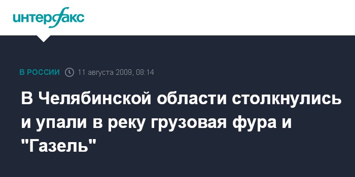 Москва. 11 августа. INTERFAX.RU - В Саткинском районе Челябинской области грузовая фура врезалась в автомобиль "Газель". Как сообщил агентству "Интерфакс-Урал" сотрудник пресс-центра ГУ МЧС РФ по Челябинской области, дорожно-транспортное происшествие произошло в понедельник утром на 1687-м километре автотрассы Челябинск-Уфа. У грузовой фуры отказали тормоза, и она столкнулась с "Газелью". Оба автомобиля упали в реку Малая Сатка. Три человека - граждане Таджикистана - погибли на месте, водитель фуры получил травмы.