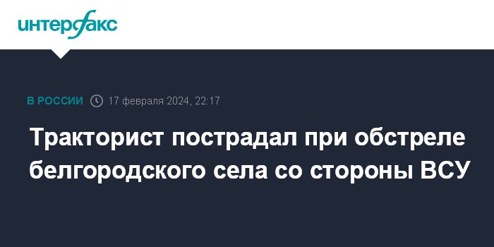 Москва. 17 февраля. INTERFAX.RU - Село в Белгородской области попало под обстрел со стороны Украины, один человек пострадал, сообщил губернатор Вячеслав Гладков.