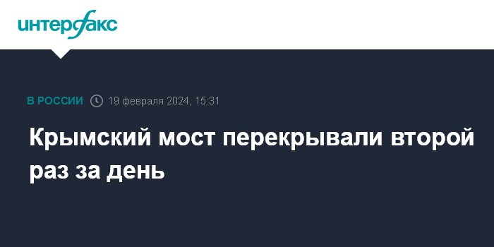 Москва. 19 февраля. INTERFAX.RU - Движение автотранспорта по Крымскому мосту перекрывалось второй раз в течение дня. Об этом говорится в телеграм-канале, который информирует о ситуации на на автомобильных подходах к мосту.