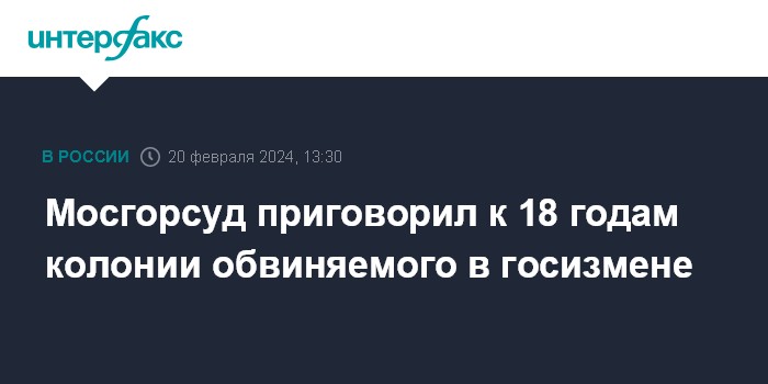 Мосгорсуд приговорил к 18 годам колонии обвиняемого в госизмене