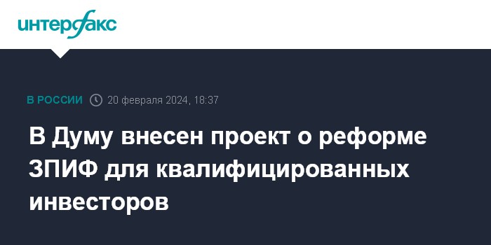 Москва. 20 февраля. INTERFAX.RU - Группа депутатов и сенаторов внесла в Госдуму законопроект о модернизации работы закрытых паевых инвестиционных фондов (ЗПИФ) для квалифицированных инвесторов.