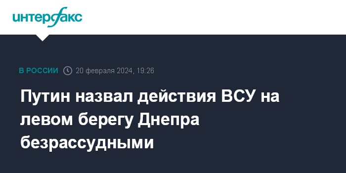 Москва. 20 февраля. INTERFAX.RU - Украинские военные на левом берегу Днепра осуществляли "абсолютно безрассудные действия", они могут повториться, заявил президент РФ Владимир Путин.
