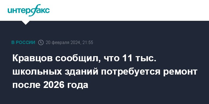 Кравцов сообщил, что 11 тыс. школьных зданий потребуется ремонт после 2026 года