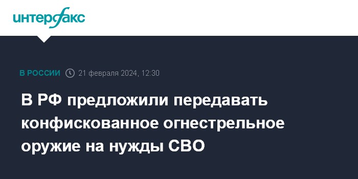 В РФ предложили передавать конфискованное огнестрельное оружие на нужды СВО