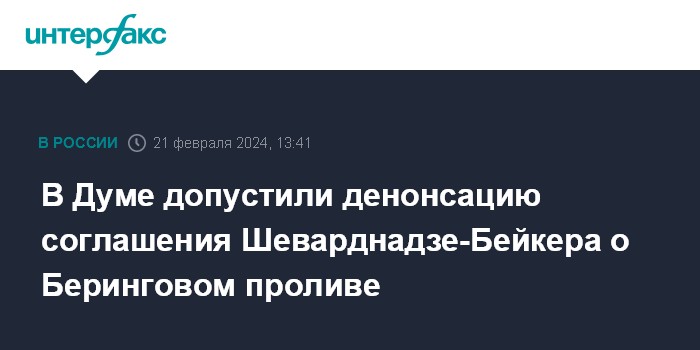В Думе допустили денонсацию соглашения Шеварднадзе-Бейкера о Беринговом проливе