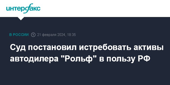 Суд постановил истребовать активы автодилера "Рольф" в пользу РФ