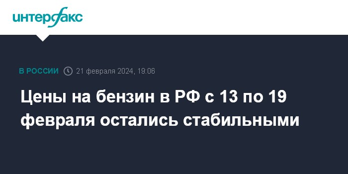 Цены на бензин в РФ с 13 по 19 февраля остались стабильными