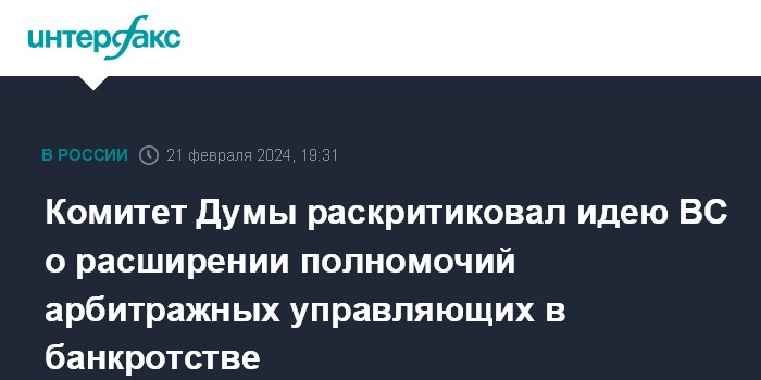 Комитет Думы раскритиковал идею ВС о расширении полномочий арбитражных управляющих в банкротстве