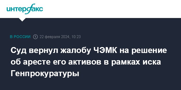 Суд вернул жалобу ЧЭМК на решение об аресте его активов в рамках иска Генпрокуратуры