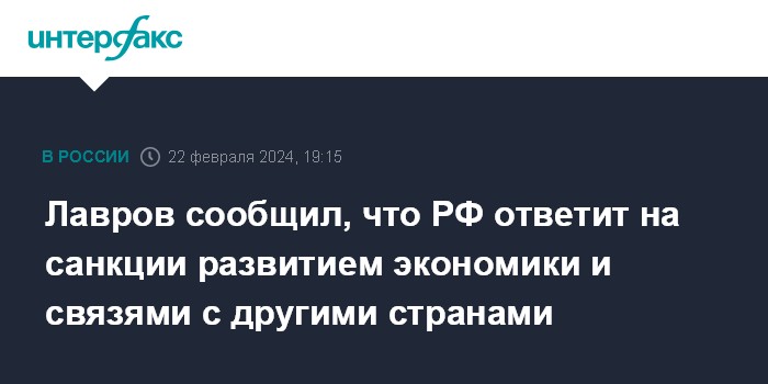 Москва. 22 февраля. INTERFAX.RU - Россия ответит на новые санкции США и Великобритании шагами по развитию собственной экономики и укреплению внешних связей с "договороспособными партнерами", заявил в четверг глава МИД РФ Сергей Лавров.