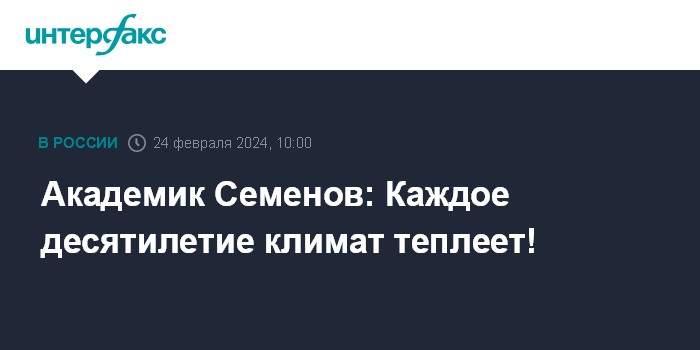 Академик Семенов: Каждое десятилетие климат теплеет!