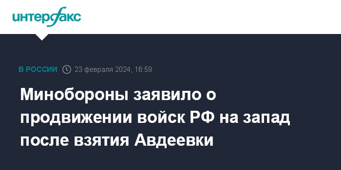Москва. 23 февраля. INTERFAX.RU - Российские войска после взятия города Авдеевка в Донбассе продвигаются в западном направлении, за неделю улучшили положение на купянском, донецком и южнодонецком направлениях, сообщило Минобороны РФ в пятницу.