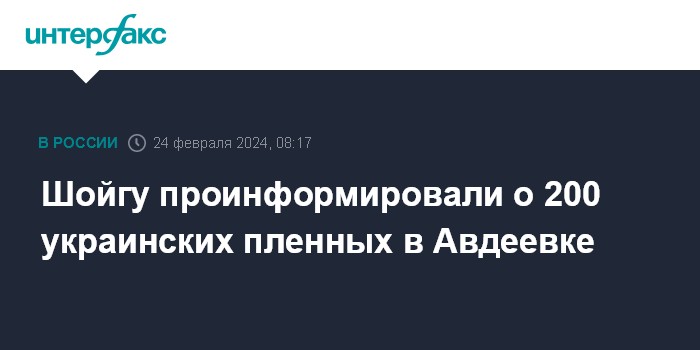 Москва. 24 февраля. INTERFAX.RU - Около 200 украинских военных взяты в плен во время "зачистки" города Авдеевка в Донбассе, доложили министру обороны РФ Сергею Шойгу в командном пункте группировки войск "Центр".