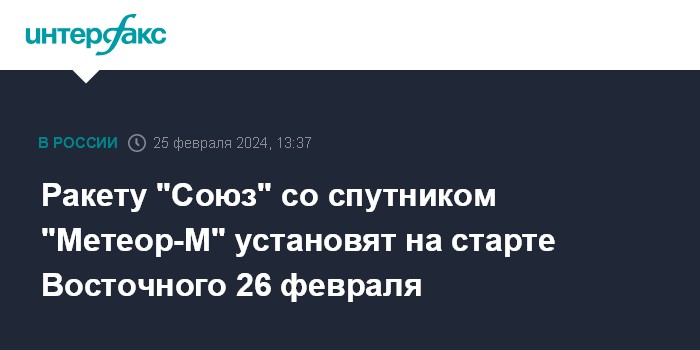 Ракету "Союз" со спутником "Метеор-М" установят на старте Восточного 26 февраля