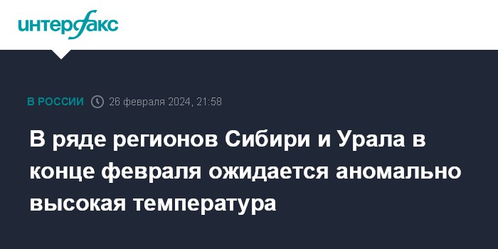 В ряде регионов Сибири и Урала в конце февраля ожидается аномально высокая температура