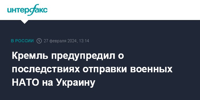 Кремль предупредил о последствиях отправки военных НАТО на Украину