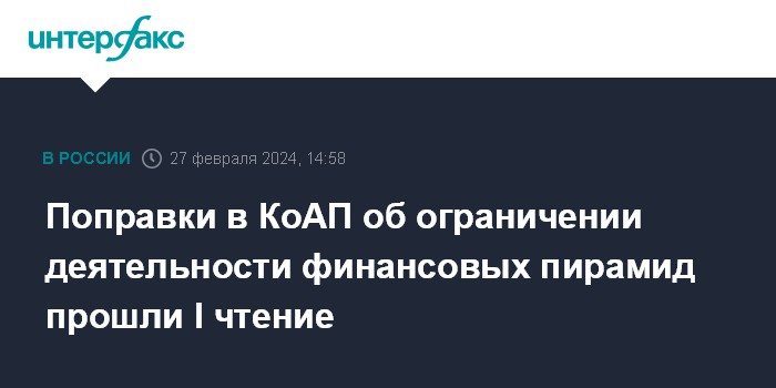 Поправки в КоАП об ограничении деятельности финансовых пирамид прошли I чтение