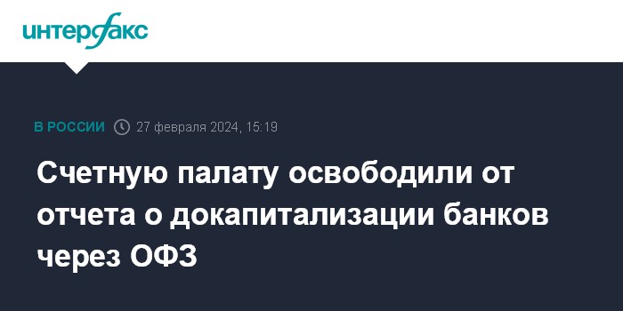 Счетную палату освободили от отчета о докапитализации банков через ОФЗ