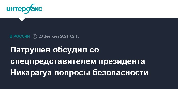 Москва. 28 февраля. INTERFAX.RU - Секретарь Совета безопасности России Николай Патрушев в Манагуа обсудил с представителем президента Никарагуа по вопросам отношений с РФ Лауреано Ортегой вопросы активизации взаимодействия в области кибербезопасности и правоохранительных служб.