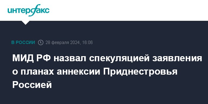 МИД РФ назвал спекуляцией заявления о планах аннексии Приднестровья Россией
