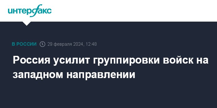 Москва. 29 февраля. INTERFAX.RU - Президент РФ Владимир Путин заявил, что Россия нарастит группировки войск на западном направлении.
