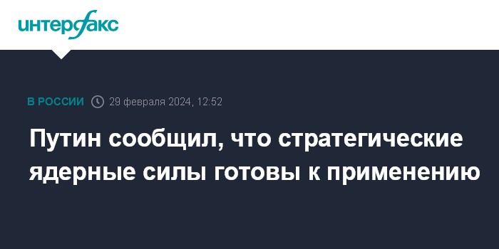 Путин сообщил, что стратегические ядерные силы готовы к применению
