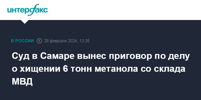 Суд в Самаре вынес приговор по делу о хищении 6 тонн метанола со склада МВД