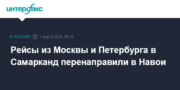 Рейсы из Москвы и Петербурга в Самарканд перенаправили в Навои