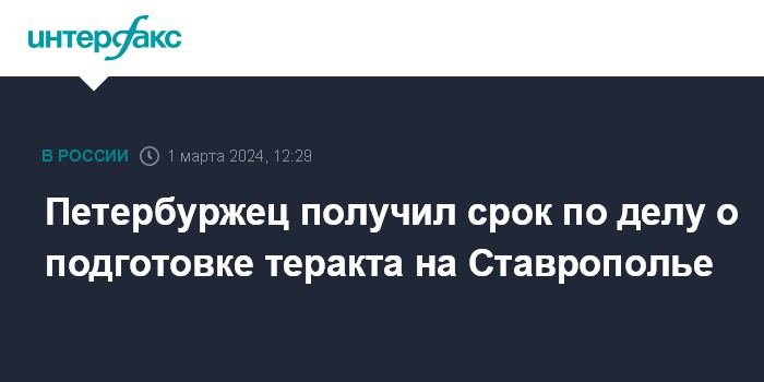 Петербуржец получил срок по делу о подготовке теракта на Ставрополье