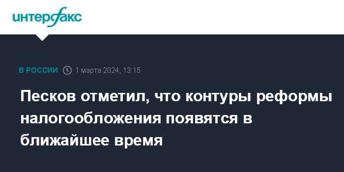 Песков отметил, что контуры реформы налогообложения появятся в ближайшее время