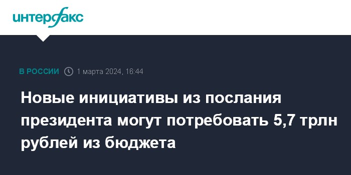 Новые инициативы из послания президента могут потребовать 5,7 трлн рублей из бюджета